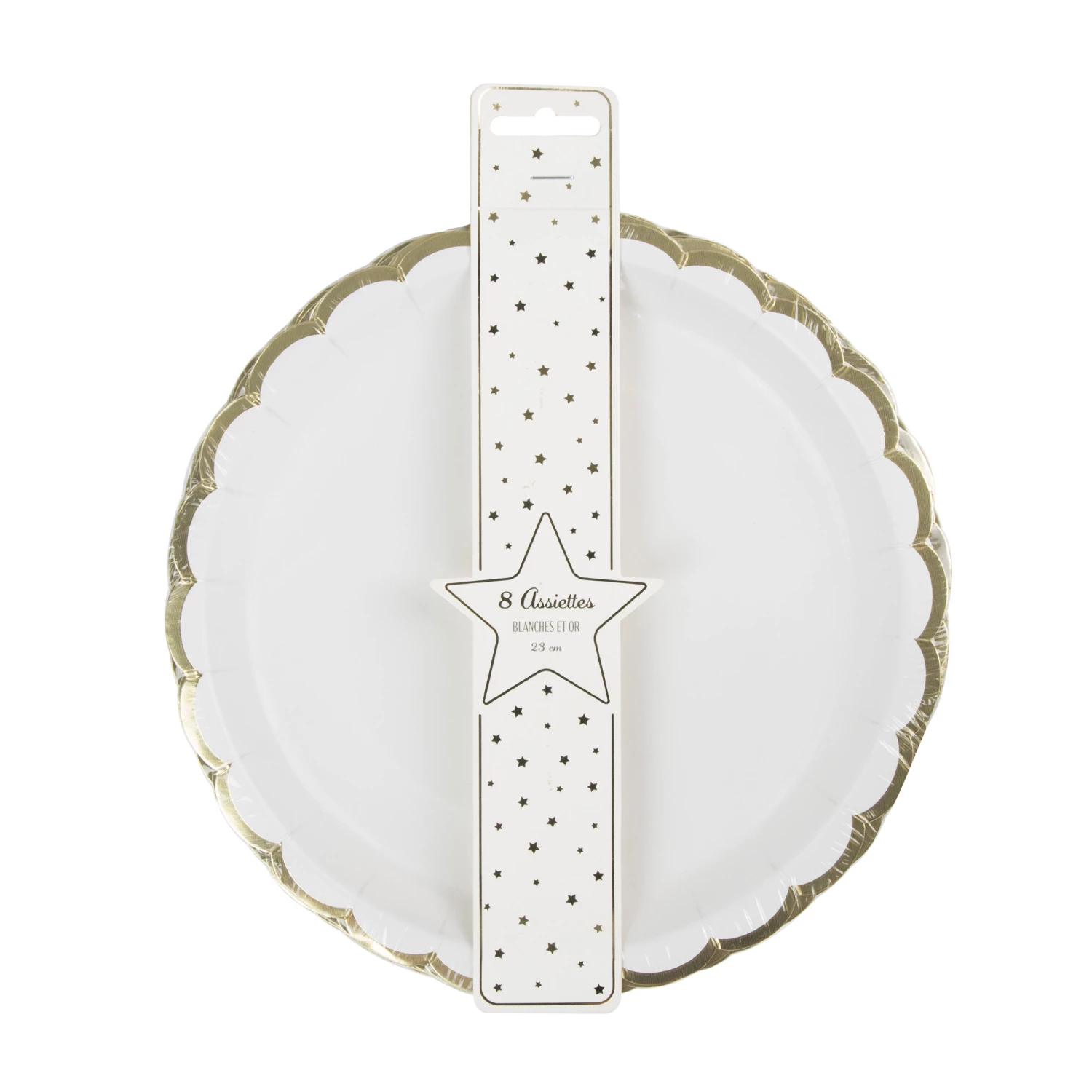 ASSIETTES BLANCHES ET OR (Pack 8 Assiettes 23 Cm)