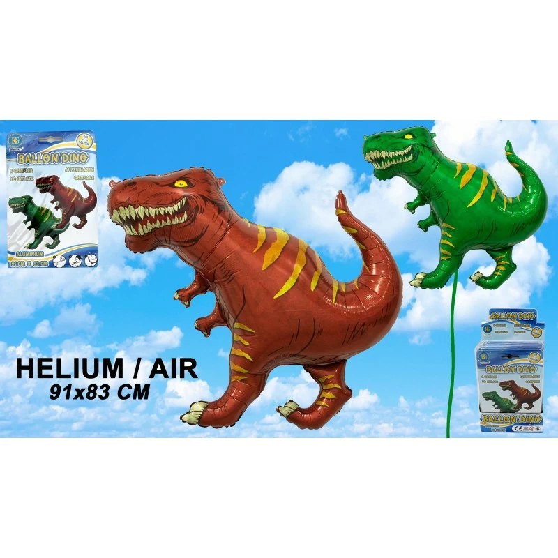 Un ballon en aluminium en forme de dinosaure, ce ballon est gonflable à l’hélium ou à l’air (bouche ou gonfleur), sa taille est de 91 x 83 cm. C’est l’accessoire idéal pour défiler lors d’un carnaval ou pour offrir à des enfants lors d’une kermesse ou une fête en plein air. Découvrez tous nos produits gonflables et ballons.