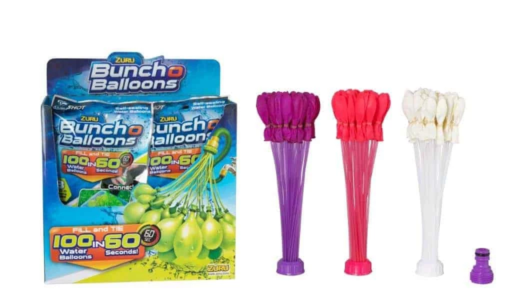 Une nouveauté pour l’été, un jeu d’eau, une animation originale pour amuser les petits et le grands par exemple pour tenir un stand de kermesse. Un kit regroupant 3 liasses de ballons, au total 100 ballons prêts a être remplis d’eau pour faire des bombes a eau et que les enfants ou les grands s’amusent en plein air. Sur un tuyau d’arrosage avec un adaptateur fourni, en 60 secondes tout est prêt, des ballons remplis d’eau avec fermeture automatique et il n’y a plus qu’a lancer la bataille d’eau. Méfiez vous des imitations, « Zuru Bunch o’Balloons » est un produit sous licence officielle, c’est un produit tendance pour 2016. Lot vendu par 12, le prix indiqué est le prix unitaire d’un sachet regroupant les 3 bundles et les 100 ballons avec l’appareillage nécessaire.