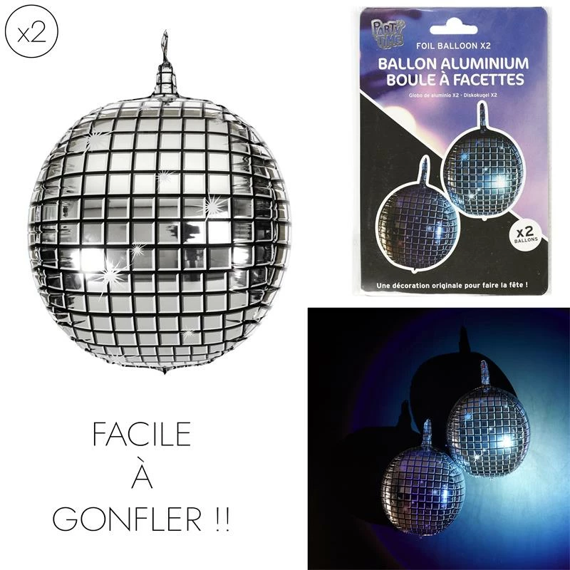 BALLONS DISCO MÉTALLISÉS 2 PIECES (Boule à Facettes 55 Cm)