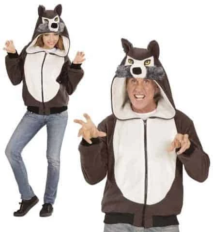 Un super blouson polaire avec une capuche pour vous déguiser en loup sur les pistes cet hiver ou bien pour mettre l’ambiance à une soirée déguisée sur le thème des animaux. Ce déguisement animaux de la marque Widmann est vendu par lot de 4 pièces minimum, il existe en tailles femmes et hommes, le prix indiqué est le prix unitaire.