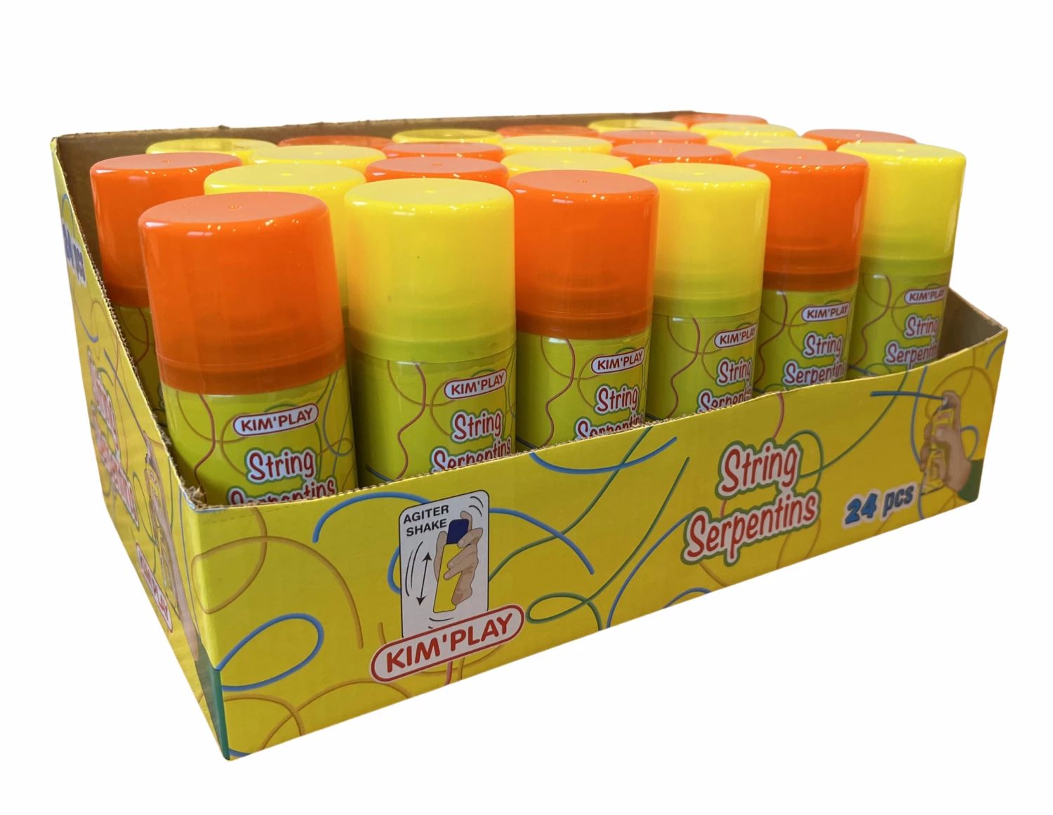 Bombe fils serpentins pour faire la fête, choisissez la bombe fil et la couleur et c’est parti pour des soirées avec cotillons et ambiance de folie, accessoire indispensable pour fêter la nouvelle année. Lanceur de fil fluo, 2 couleurs. Une bombe aérosol de fils spaghettis fluo pour viser dans tous les sens, recouvrir les convives de serpentins après le feu d’artifice ! Une bombe aérosol fil spaghetti de 83ml ininflammable. Lot vendu par 24, le prix indiqué est le prix unitaire.