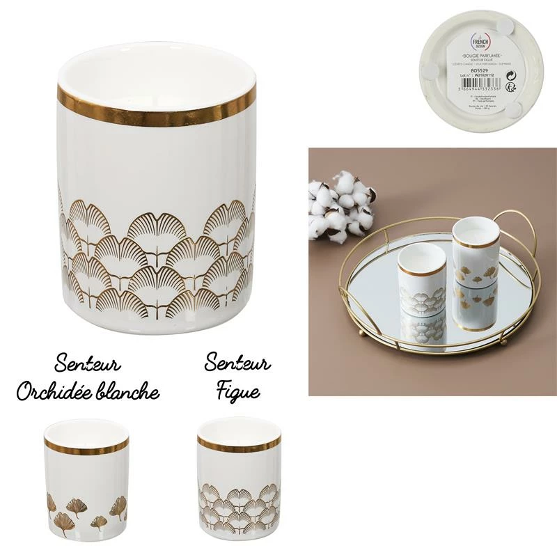 BOUGIE DÉCO CÉRAMIQUE (Taille 7.8 X 9 X 7.8 Cm) Parfumée – 2 Senteurs