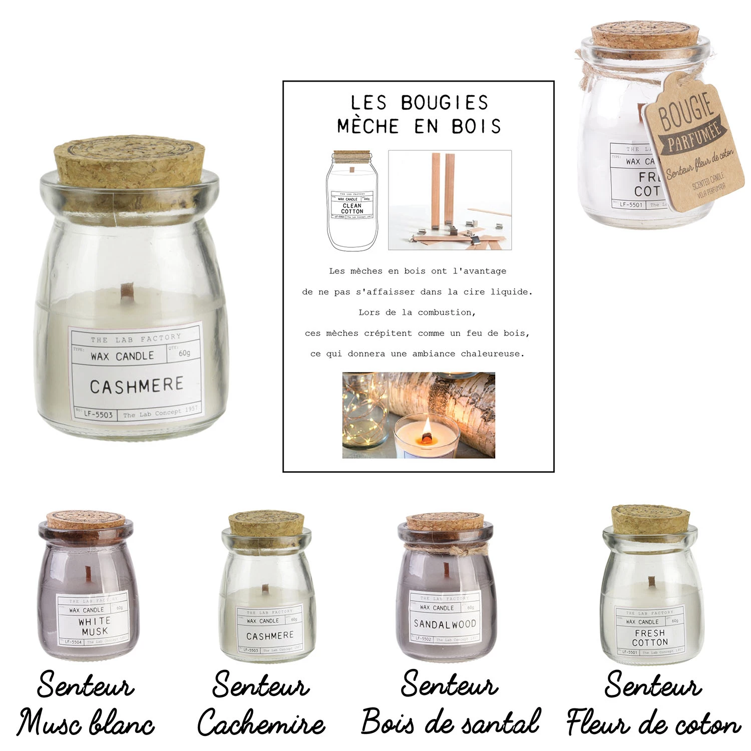 BOUGIE PARFUMÉE NATURE (Couvercle En Liège – 8 Cm) Mèche En Bois – 4 Senteurs