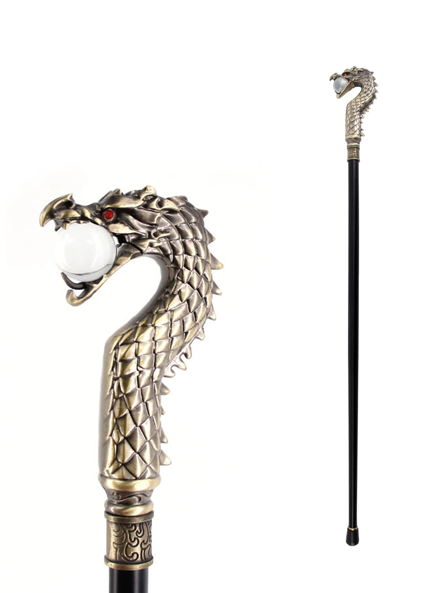 CANNE DRAGON EN MÉTAL (93 Cm Avec Boule De Verre)