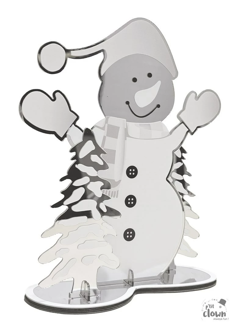 CENTRE DE TABLE DE NOEL (Bonhomme De Neige 20 Cm) Blanc Et Noir – Effet Miroir