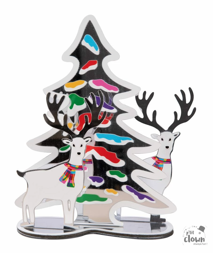 CENTRE DE TABLE DE NOEL (Rennes Et Sapin 20 Cm) Multi Couleurs – Effet Miroir
