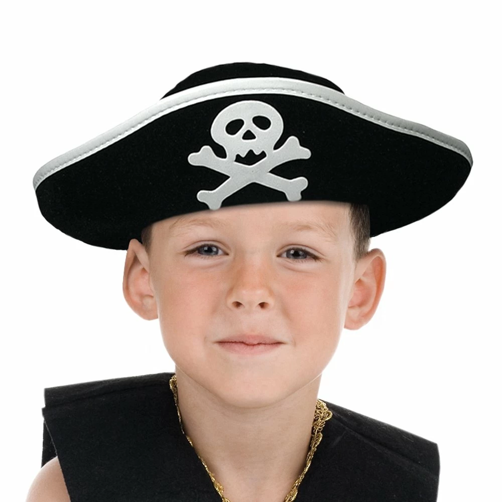 Très joli chapeau de corsaire pour enfant, il est de couleur noire avec sa tête de mort en blanc sur la face avant il ne fait aucun doute, vous êtes un pirate ! Son tour de tête est de 18 cm, c’est l’accessoire idéal pour un carnaval, une soirée déguisée ou lors d’un anniversaire. Retrouvez tous nos déguisements enfants.