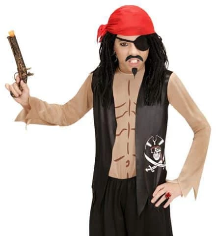 Un superbe t-shirt imprimé avec un veston , un bandana et un cache oeil pour incarner un jeune pirate lors de votre prochaine soirée déguisée (voir vidéo). Ce joli déguisement original de chez Widmann est vendu par 6 pièces minimum, le prix indiqué est le prix unitaire, taille enfant 11/13 ans.