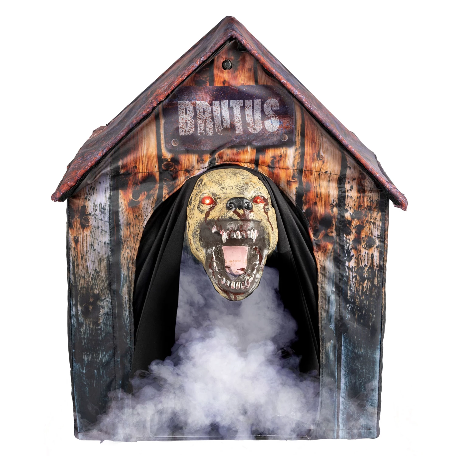 Un chien squelette en version zombie et effrayant dans une cabane, un accessoire original et idéal pour votre décoration Halloween, vous pourrez le mettre à terre, dans un coin de la salle ou se déroulera votre prochaine soirée déguisée. Si vous voulez surprendre vos invités, ce chien donnera beaucoup de réalisme à votre décoration lors d’une soirée sur le thème de la magie et de l’horreur. Cette décoration mesure 40.5 x 40.5 x 55.5 cm, elle est sonore et lumineuse. Découvrez tous nos squelettes d’animaux.