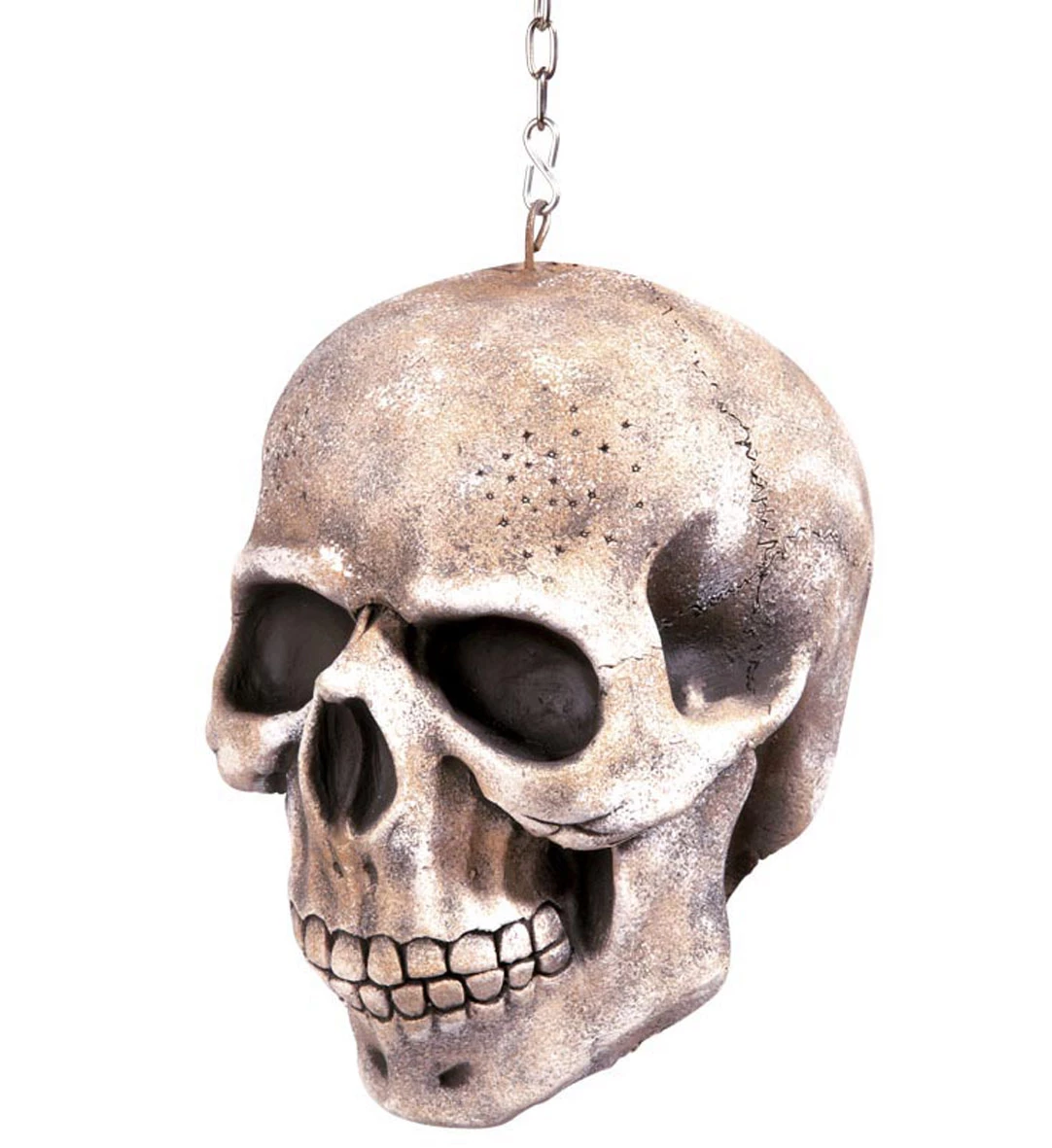 Une superbe tête de mort à suspendre avec une chaine en latex (voir photo), un objet original de 20 cm pour la soirée d’Halloween, vous pourrez mettre ce crane dans un coin de la salle ou se déroulera votre prochaine soirée déguisée. Une jolie décoration lors d’une soirée sur le thème de la magie et de l’horreur. Découvrez toutes nos décorations animées pour Halloween en cliquant ici.