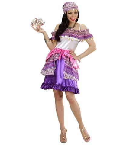 Un superbe déguisement adulte de gipsy pour incarner une femme gitane ce déguisement pour femme de la marque Widmann comprend une jolie robe avec un foulard assorti (voir vidéo).Impeccable pour votre prochaine soirée déguisée sur le thème des gitans ou des pays et régions.