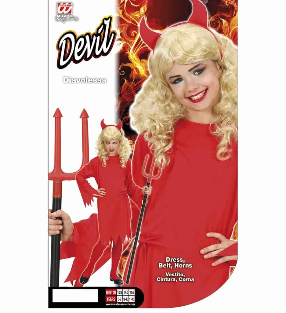 Superbe déguisement Halloween pour enfants de la diablesse, cette version de la marque Widmann avec ses cornes du diable et sa belle robe rouge est conçue pour les filles de 5 à 13 ans. Idéal pour la fête d’Halloween, un goûter d’anniversaire ou une soirée déguisée avec papa et maman. Ce déguisement peut aussi être utilisé lors d’un spectacle de fin d’année. Découvrez l’ensemble des déguisements enfants. Ce modèle existe en plusieurs tailles, de 5 à 13 ans, choisissez votre taille sur la droite de l’écran. Tailles proposées 5-7 ans (128 cm), 8-10 ans (140 cm) 11-13 ans (158 cm). Ce modèle est vendu sans le trident.