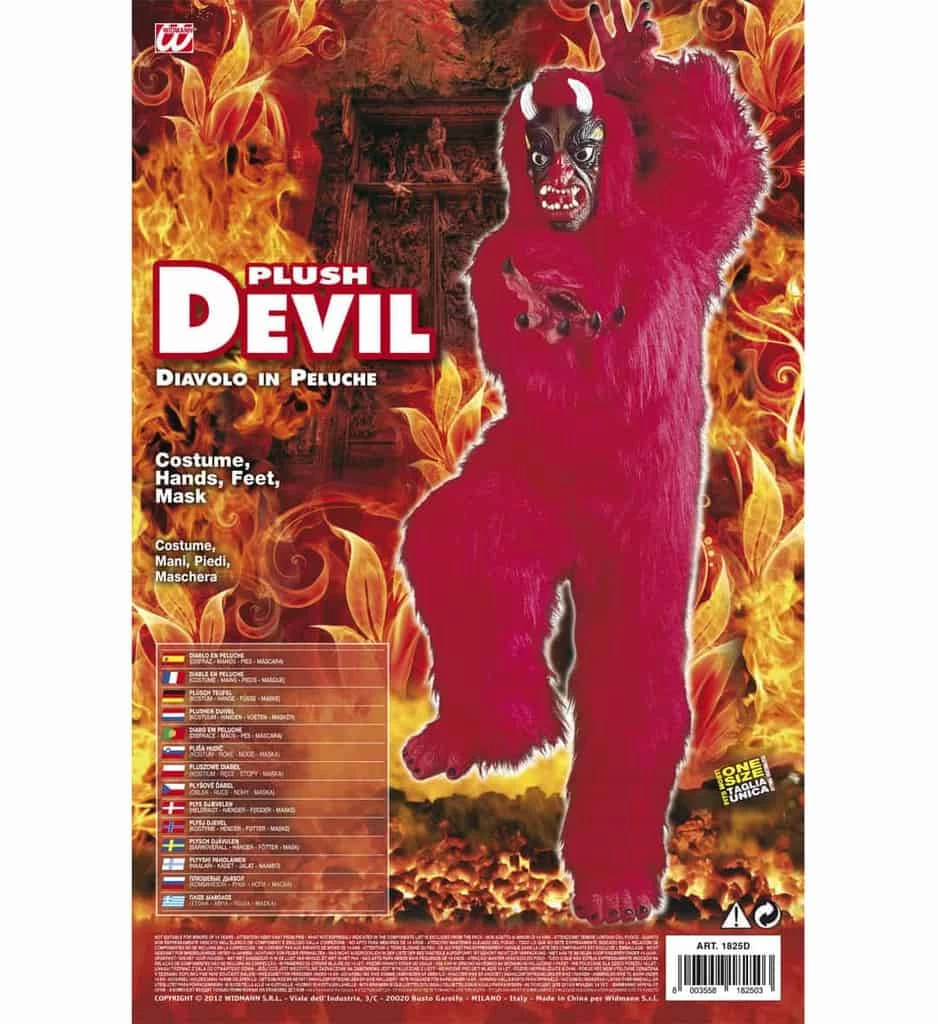 Une combinaison de diable en peluche rouge que vous allez pouvoir utiliser dans de nombreuses occasions comme des fêtes costumées, soirées déguisées, carnaval, incentive, events, Halloween. Ce déguisement complet du diable de la marque Widmann avec ses poils son masque intégré et ses cornes est assez effrayant mais également très original, une alternative aux nombreuses mascottes d’animaux qui fascinent les enfants. Cette mascotte pourra aussi vous servir dans une soirée sur le thème de l’horreur.