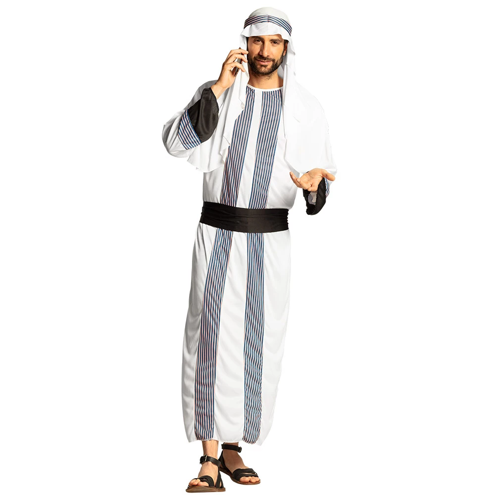 Amusez vous a incarner un prince milliardaire arabe, soyez le roi du pétrole pour les prochaines soirées déguisées, profitez en pour une fois, faites vous respecter, vous êtes l’Émir de vos convives. Ce déguisement de chez Boland sera parfait rendre crédible votre personnage de prince du Qatar, Emir d’Arabie saoudite ou altesse royale. Taille unique M/L.