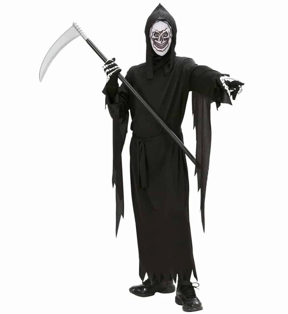 Superbe déguisement Halloween pour enfants du squelette, cette version avec son masque en forme de tête de mort et sa longue robe noire à capuche est conçue pour les petites filles et garçons de 5 à 13 ans. Idéal pour la fête d’Halloween, un goûter d’anniversaire ou une soirée déguisée avec papa et maman. Ce déguisement peut aussi être utilisé lors d’un spectacle de fin d’année. Découvrez l’ensemble des déguisements enfants. Ce modèle existe en plusieurs tailles, de 5 à 13 ans, choisissez votre taille sur la droite de l’écran. Tailles proposées 5-7 ans (128 cm), 8-10 ans (140 cm) 11-13 ans (158 cm). Ce modèle est vendu sans la faux et les gants.