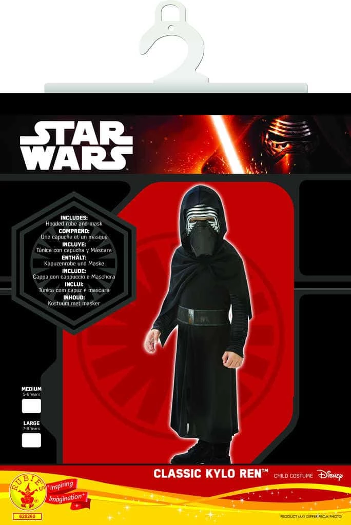 Très joli déguisement enfant pour les garçons de Kylo Ren de la saga Star Wars, qui comprend la tunique, une capuche et le masque (voir photo), souliers et pantalon non inclus. Votre enfant va pouvoir jouer au super héros et s’amuser avec les copains lors d’un anniversaire ou dans une soirée déguisée. C’est aussi un très joli cadeau à faire pour noël ou lors d’un arbre de noel d’entreprise ou association. Ce produit est sous licence officielle. Ce costume existe en 2 tailles M (5-6 ans) ou L (7-8 ans).