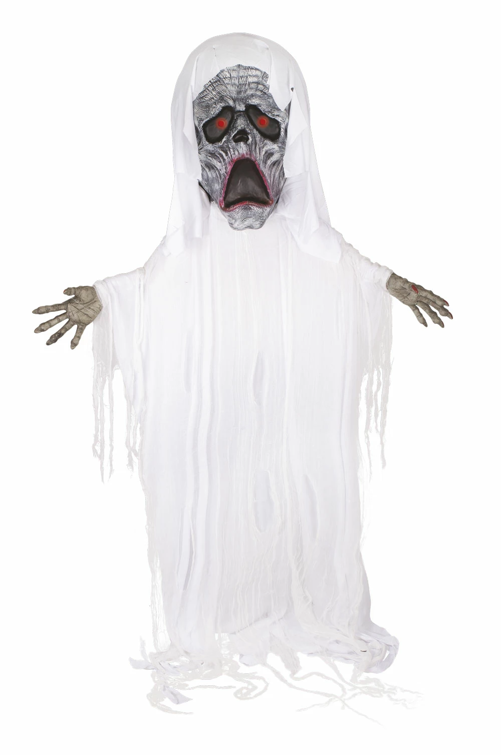 Un fantôme géant de 3 mètres de hauteur à suspendre (voir photo). C’est l’accessoire idéal pour la décoration d’une salle sur le thème de l’horreur ou à l’occasion d’Halloween ou pendant une soirée déguisée. Découvrez toutes nos décorations animées pour Halloween en cliquant ici.