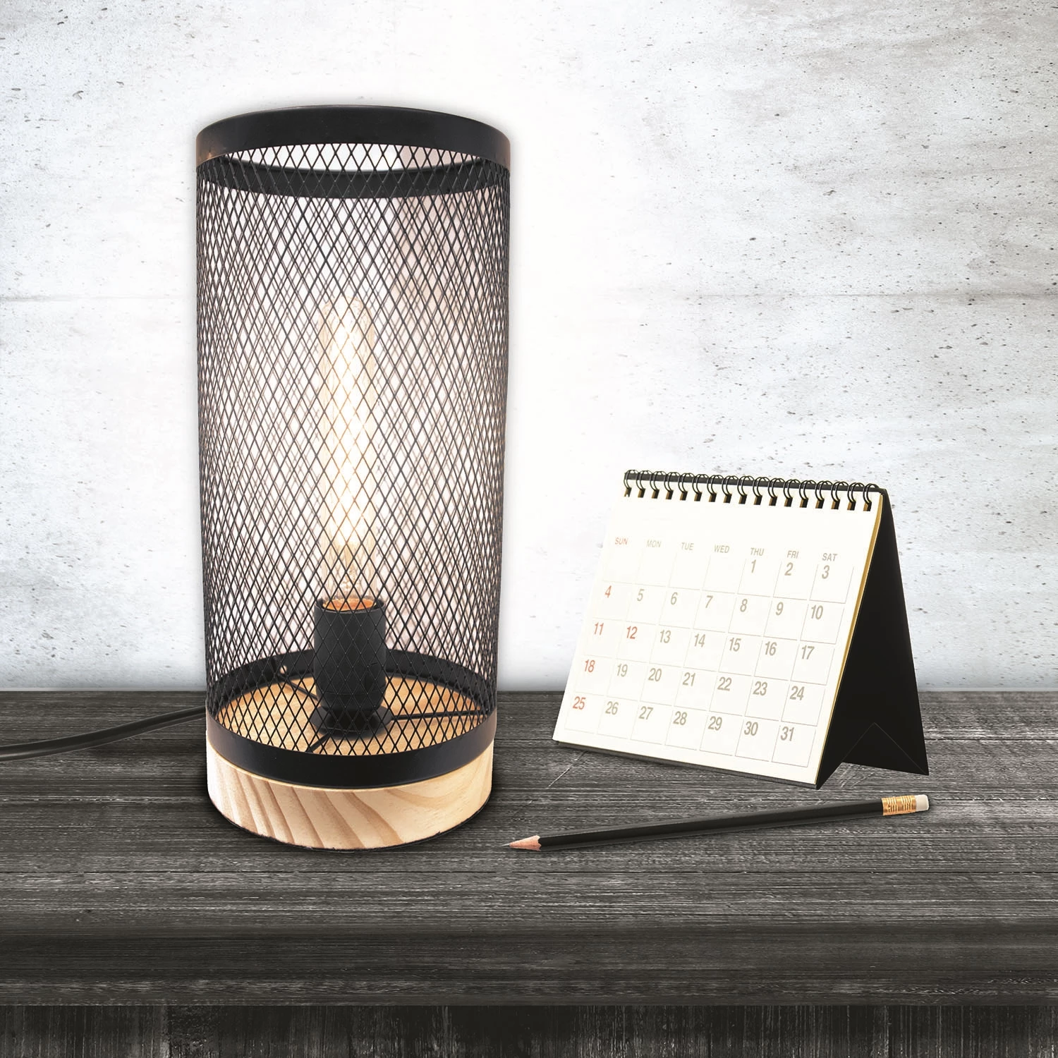 Une superbe lampe en forme de cylindre filaire avec une grille de couleur noire, impeccable pour poser sur un meuble dans un salon, une chambre ou la pièce de votre choix. Cette lampe est vendue sans l’ampoule.