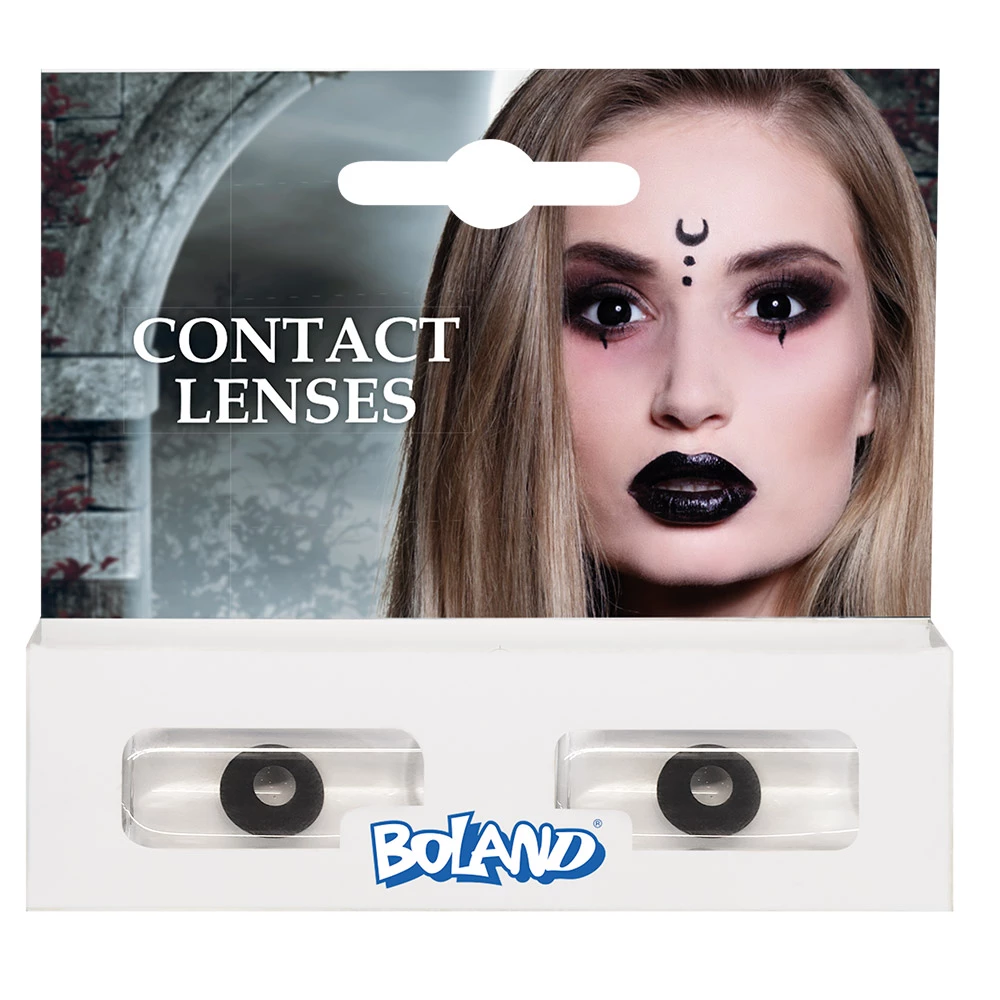 En voila une superbe idée pour surprendre tout le monde lors de votre prochaine soirée à thème, une paire de lentilles aux yeux noirs pour incarner un personnage gothique ou une sorcière. C’est l’accessoire tendance idéal pour changer votre regard pendant la fête d’ Halloween ou une soirée déguisée sur le thème de l’horreur. Découvrez nos effets spéciaux. Ces lentilles de la marque Boland sont valables 3 mois après ouverture, elles se conservent dans un produit d’entretien classique pour lentilles que vous trouverez en pharmacie. Présentation dans un petit packaging prévu pour les magasins (voir photo).