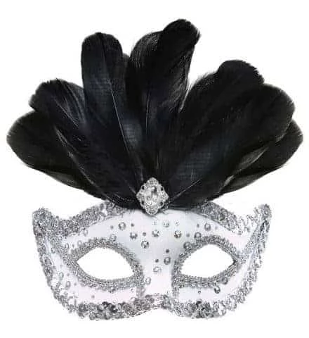 Un loup vénitien Rialto, blanc avec des pierres et des plumes noires et ses paillettes holographiques. Ce masque sera parfait et idéal pour aller au carnaval de Venise. Vous allez pouvoir vous rendre dans soirée déguisée ou défiler dans un carnaval. Ce joli masque à plumes de la marque Widmann est vendu par lot de 6 pièces minimum, le prix indiqué est le prix unitaire.