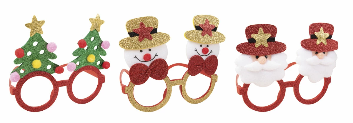 Une paire de lunettes en plusieurs modèles (voir photo), idéale pour les fêtes de noe. Ces lunettes drôles seront parfaites pour accompagner votre déguisement le soir du réveillon de noel.