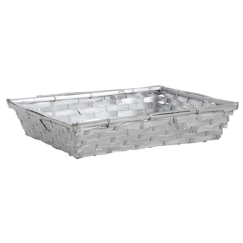 PANIER EN BAMBOU ARGENT (Taille 36 X 27 Cm)