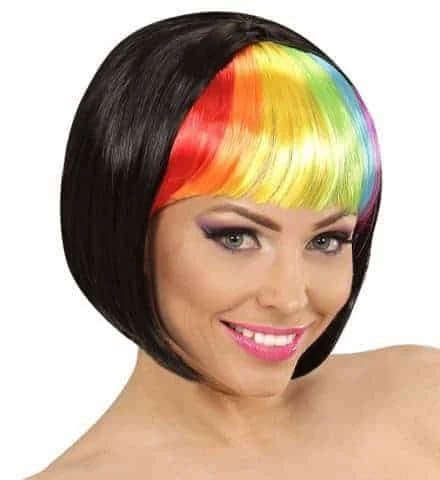 PERRUQUE CLUBBING (Bicolore Noir/arc En Ciel) Perruque En Boite