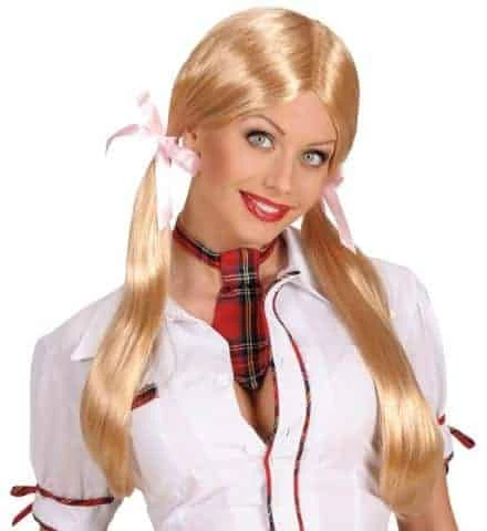PERRUQUE D’ÉCOLIÈRE (Cheveux Blonds Et Longs) Perruque En Boite