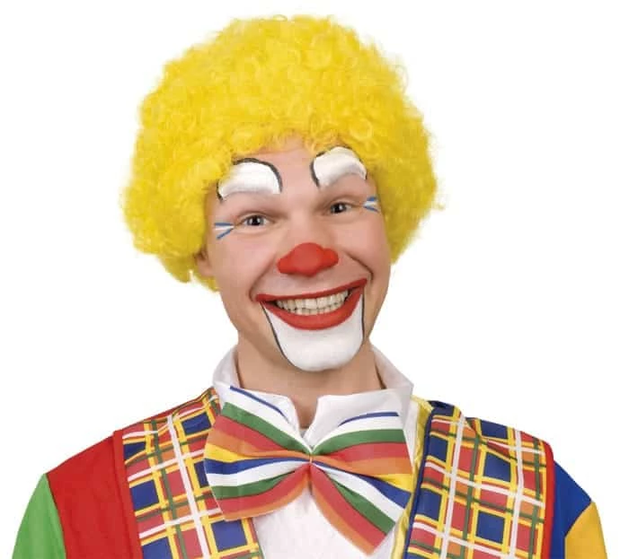 La perruque afro de clown jaune et bouclée, son jaune flashy va vous permettre de faire le clown dans les soirées déguisées ou bien pendant un spectacle. Le thème du cirque est souvent adopté, vous n’aurez plus qu’à trouver les accessoires et le costumes du clown idéal pour vous lancer ! Les enfants vont adorer si vous faites un petit spectacle de rue pendant un carnaval ou une animation lors d’un goûter d’anniversaire. L’humour et la bonne humeur, voila votre mission.