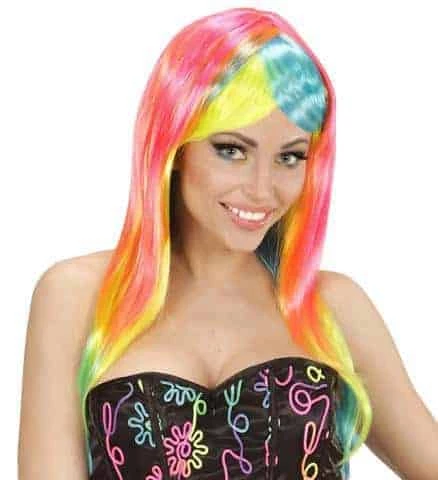 PERRUQUE FASHION NÉON (Multicolore Et Fluo) Perruque En Boite