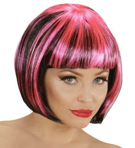 Une superbe perruque pour femme striée et bicolore noire et rose avec une coupe courte pour allez faire la fête en boite de nuit ou dans une soirée Disco ou années 80 (voir photo). Cette perruque de la marque Widmann sera idéale pour une soirée déguisée à thème. Lot vendu par 4 perruques minimum, le prix indiqué est le prix unitaire.