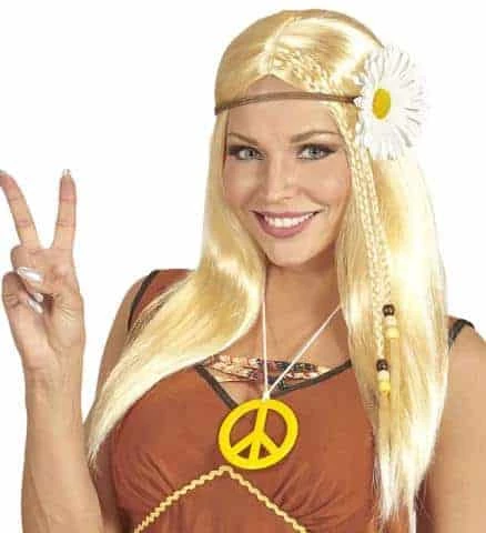 PERRUQUE HIPPIE FEMME (Bandeau Marguerite XL) Perruque Blonde En Sachet