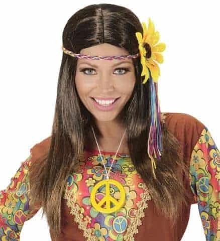 PERRUQUE HIPPIE FEMME (Bandeau Tournesol XL) Perruque Châtain En Sachet