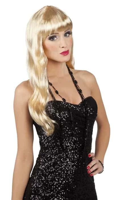 Cette perruque pour femme aux longs cheveux blonds pour femme et aux effets ondulés qui couvriront vos épaules ainsi que sa frange pour couvrir votre front entièrement, cette perruque blonde sera l’accessoire idéal pour changer de look dans les soirées déguisées ou à thème comme celui des années folles. Votre visage vous donnera une nouvelle personnalité pour quelques heures ou vous pourrez danser, chanter avec un look adapté.