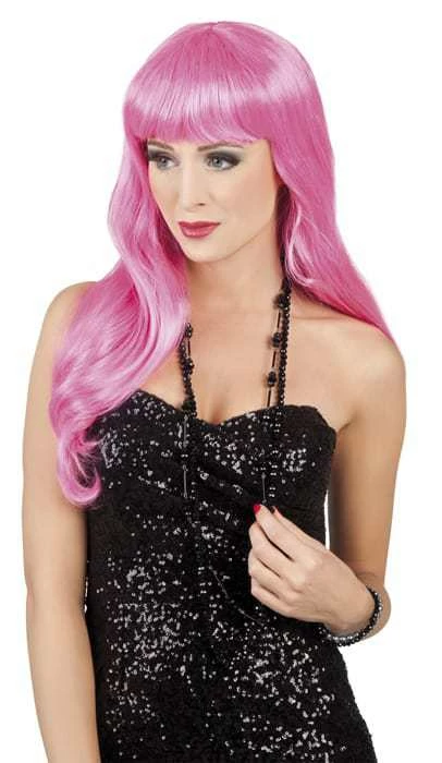 Cette perruque aux longs cheveux roses et aux effets ondulés pour femme qui couvriront vos épaules ainsi que sa frange pour couvrir votre front entièrement sera l’accessoire idéal pour changer de look dans les soirées déguisées ou à thème comme un enterrement de vie de jeune fille evjf. Votre visage vous donnera une nouvelle personnalité pour quelques heures ou vous pourrez danser, chanter avec un look adapté.