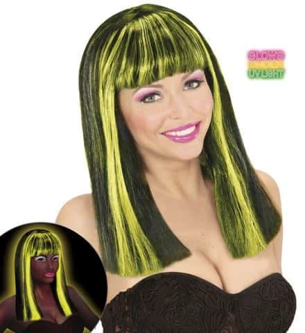 Une superbe perruque pour femme baptisée Patsy avec de longs cheveux noirs et des mèches jaunes fluo pour incarner une starlette ou un personnage de votre choix (voir photo). Cette perruque de la marque Widmann va vous permettre d’incarner un personnage original et aussi un peu féerique lors de votre prochaine soirée déguisée. Lot vendu par 4 perruques minimum, le prix indiqué est le prix unitaire.