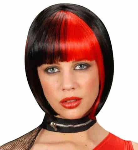 PERRUQUE ZOEY BICOLORE (Noire + Mèches Rouges) Perruque En Boite