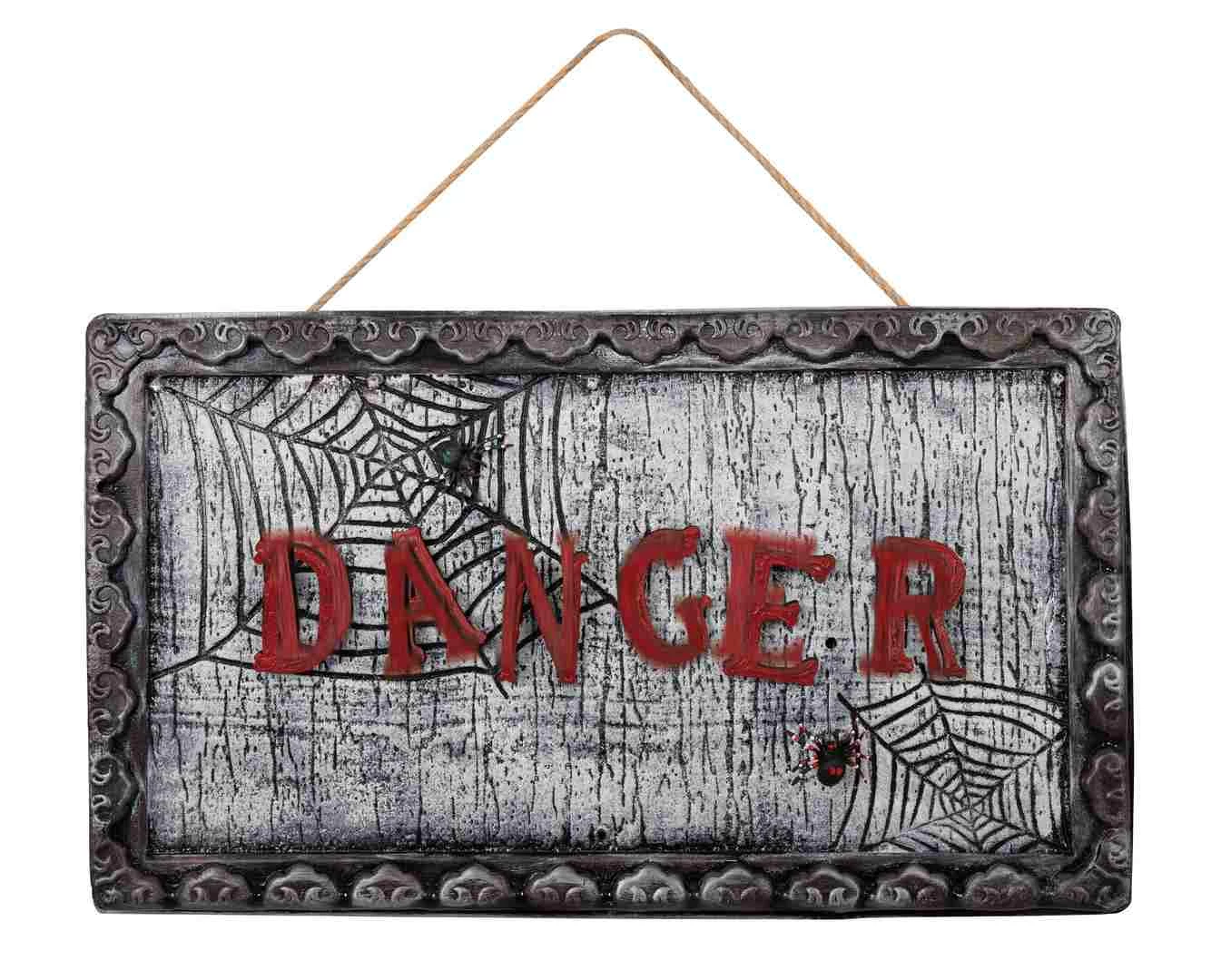 Une plaque avec l’inscription « Danger » de 140 cm avec une animation son et lumière (voir vidéo), cette décoration va impressionner les petits et les grands pour Halloween. Une décoration idéale à mettre lors de votre prochaine soirée déguisée. Vous allez pouvoir faire une décoration originale et sympa. Découvrez toutes nos décorations animées pour Halloween en cliquant ici.