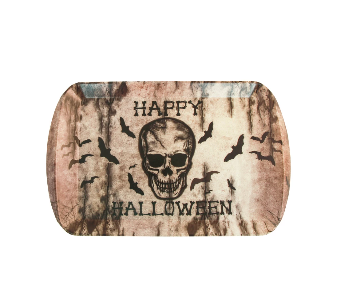 PLATEAU TÊTE DE MORT (Motif Happy Halloween) Rectangulaire 38 X 23 Cm