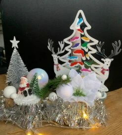 CENTRE DE TABLE DE NOEL (Rennes Et Sapin 20 Cm) Multi Couleurs – Effet Miroir