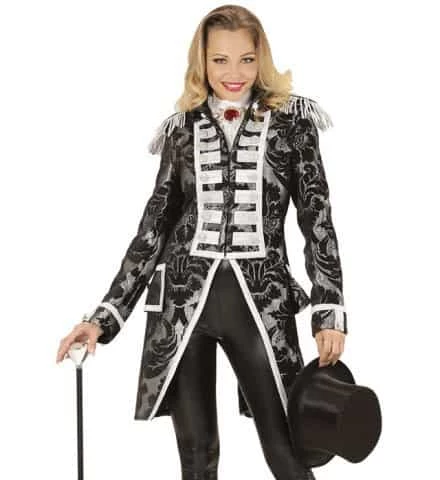 Une superbe veste en queue de pie pour femme, un modèle jacquard argenté très élégant pour une soirée déguisée ou à l’occasion d’un carnaval. Un déguisement Widmann qui pourra vous servir à nombreuses occasions.