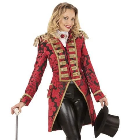 Une superbe veste en queue de pie pour femme, un modèle jacquard rouge très élégant pour une soirée déguisée ou à l’occasion d’un carnaval. Un déguisement Widmann qui pourra vous servir à nombreuses occasions.