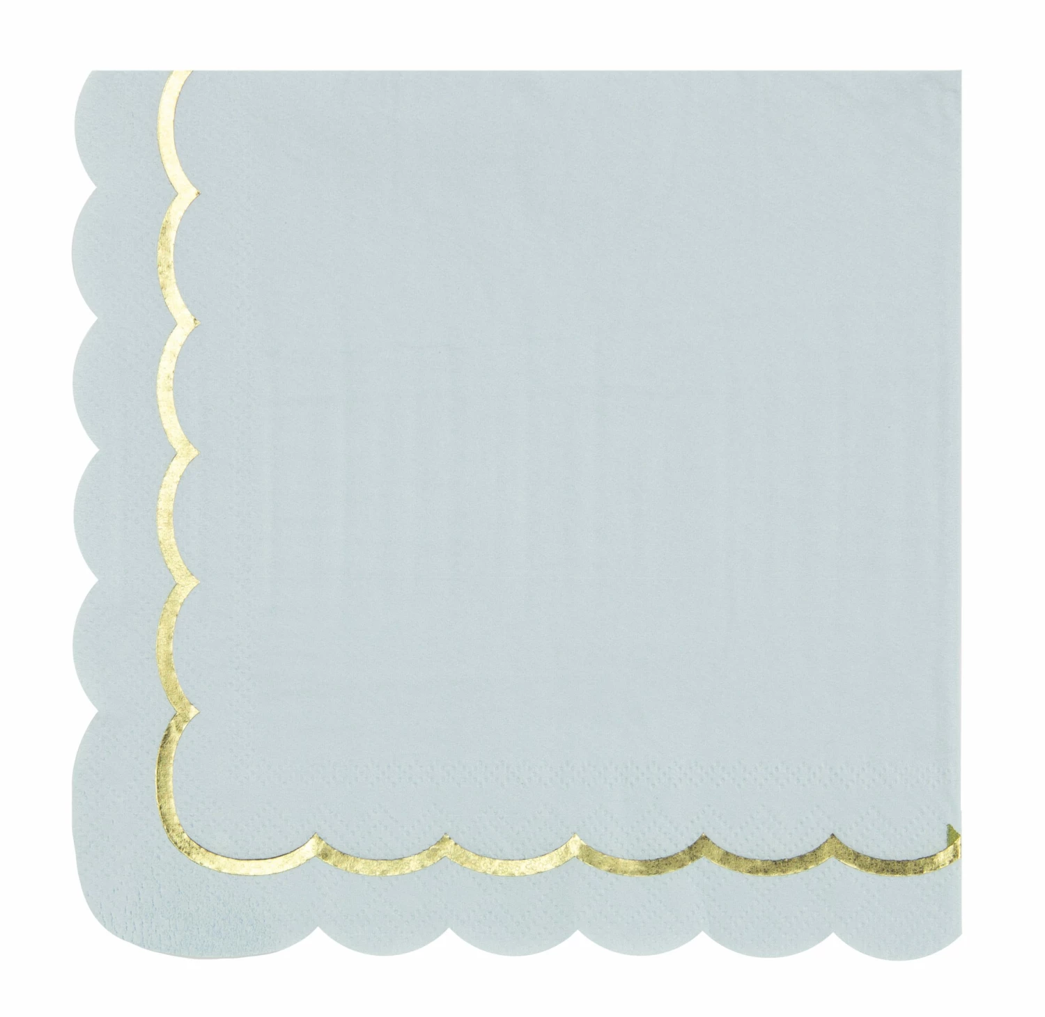 SERVIETTES BLEU PASTEL/OR (16 Serviettes 33 X 33 Cm)