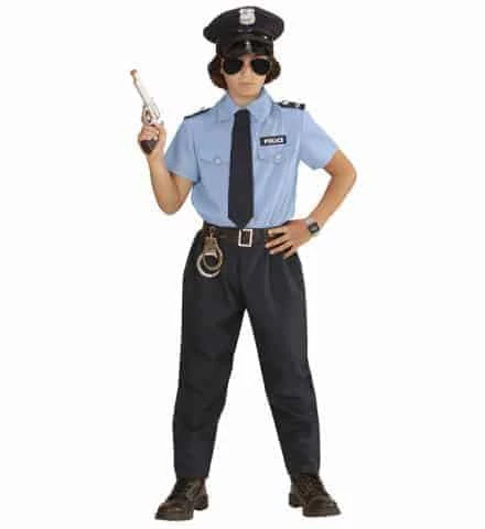 Un déguisement enfant de la marque Widmann, un superbe uniforme de policier comprenant, une chemise, un pantalon, une ceinture, une cravate et une casquette. Ce déguisement est disponible en plusieurs tailles de 2 à 13 ans (Démo vidéo). Retrouvez tous nos articles sur le thème des policiers pour enfants.