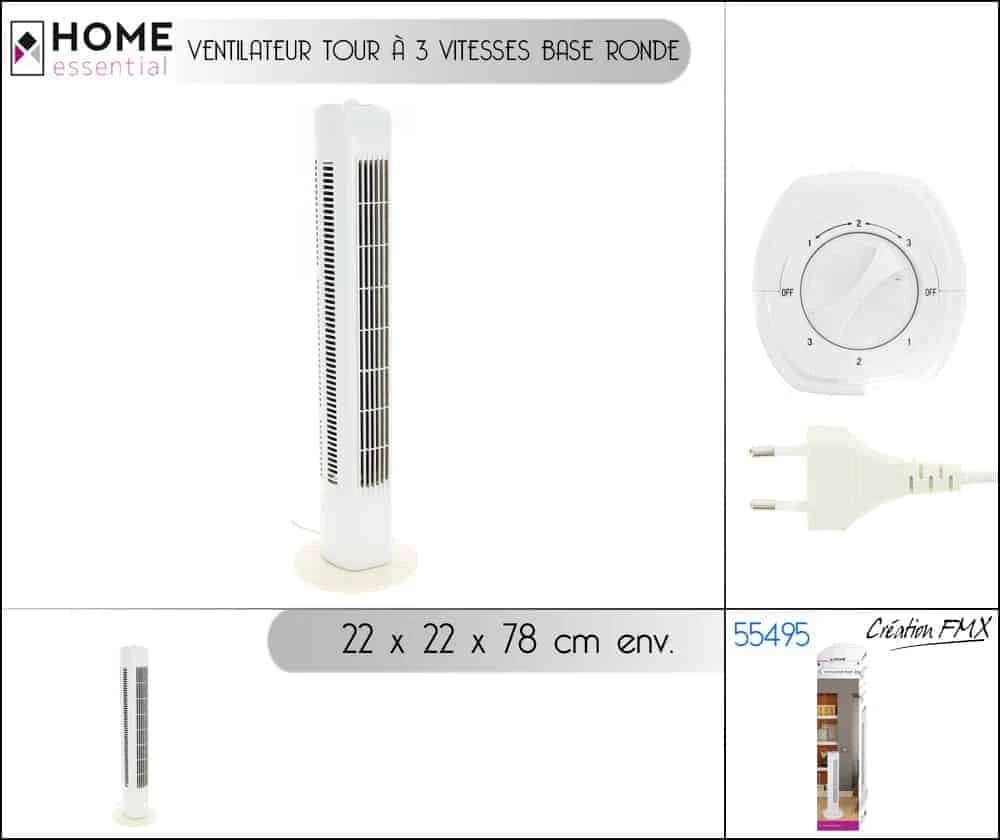 Un ventilateur colonne de 22 x 22 x 78 cm avec 3 vitesses. C’est l’accessoire indispensable pour rafraîchir votre pièce l’été et les journées de canicule.